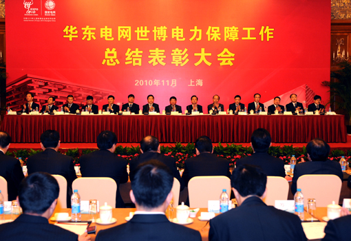 中國2010年上海世博會電力保障工作是江蘇省電力公司有史以來承擔的時間最長、規模最大、標準最高、責任最重的保電任務。在國家電網公司的領導下,江蘇省電力公司聯合華東各兄弟公司,大力弘揚國家電網公司企業精神和核心價值觀,團結一心,頑強拼搏,眾志成城,確保了包括江蘇入滬4個輸電通道在內的15座500千伏變電站及34條重要輸電線路的安全,確保了世博園區和各項重要活動供電萬無一失,奪取了世博會供電保障和服務工作的完勝。