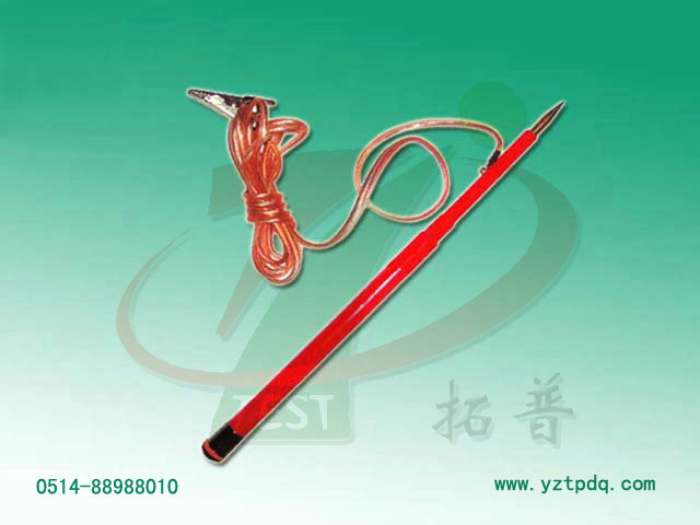 2. 把配制好的接地線插頭插入直流高壓放電棒的頭端部位的插孔內,將地線的另一端與大地連接,接地要可靠。