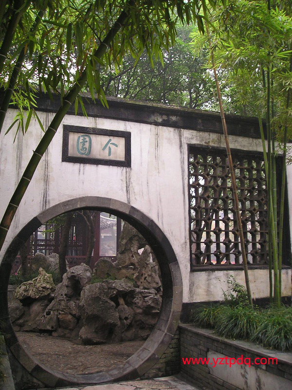 清代揚(yáng)州的鹽商開(kāi)始營(yíng)造園林,至今還保留著許多優(yōu)秀的古典園林,其中歷史最悠久、保存最完整、最具藝術(shù)價(jià)值的,要算坐落在古城北隅的“個(gè)園”了。個(gè)園由兩淮鹽業(yè)商總黃至筠建于清嘉慶23年(公元1818年)。1988年個(gè)園被國(guó)務(wù)院授予第三批“全國(guó)重點(diǎn)文物保護(hù)單位”。個(gè)園是以竹石取勝,連園名中的“個(gè)”字,也是取了竹字的半邊,應(yīng)合了庭園里各色竹子,主人的情趣和心智都在里面了。此外,它的取名也因?yàn)橹褡禹敳康拿咳袢~都可以形成“個(gè)”字,在白墻上的影子也是“個(gè)”字。
