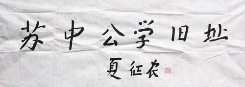 通過一路幽靜的鄉間小道,在一片田野中,我們看到了一個略顯陳舊但是巍巍聳立的紀念碑,碑上有蘇中公學老校長、原上海市委書記處書記夏征農親筆題寫的“蘇中公學紀念碑”七個大字,塔頂裝飾著當年蘇中公學的金黃色?;諛酥?,高高屹立在天空中,熠熠生輝。慢步走近紀念碑,碑身兩側有兩塊漢白玉大理石,上面鐫刻著和公學學員學習、練兵的圖案,真實的反映了當時學院學習的情景。