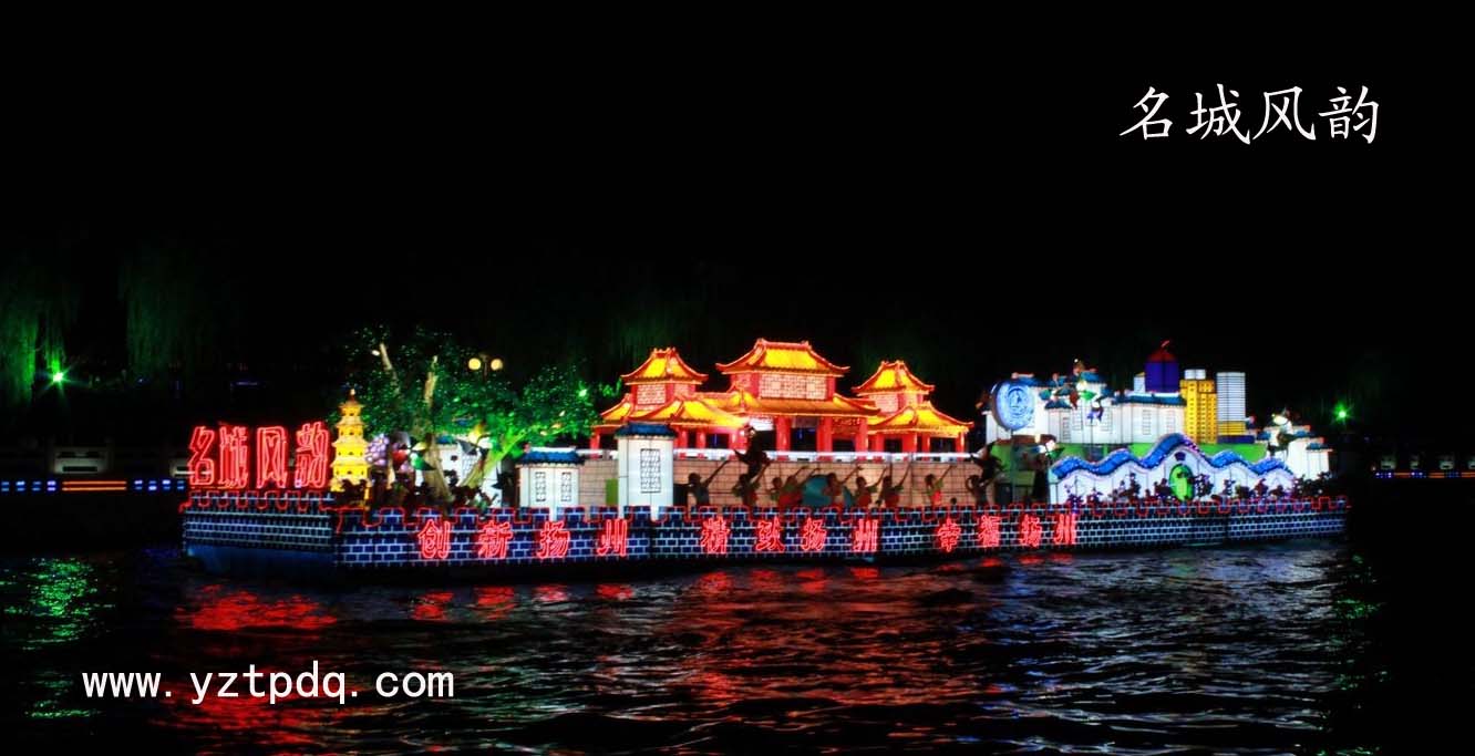 充分展示揚州建設成就和城市風采的“名城風韻”號花船由揚州建設局承制。花船以古典和現代風格的完美融合,表現出人與自然的親近,城市與綠色的交融,時尚與傳統的和諧,盡展“精致揚州、創新揚州、幸福揚州”的神采和風韻。