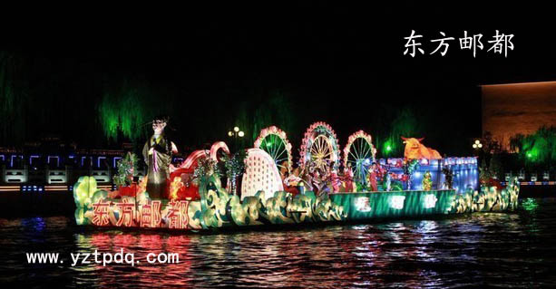 “東方郵都”號花船由高郵市承制,該花船以運河情為主題,突出了高郵豐富的歷史與文化,顯示了一個歷史文化與現代文明交相輝映的千年古城。